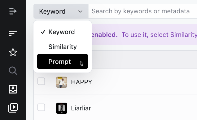 In the search type selector at the top, select Prompt.